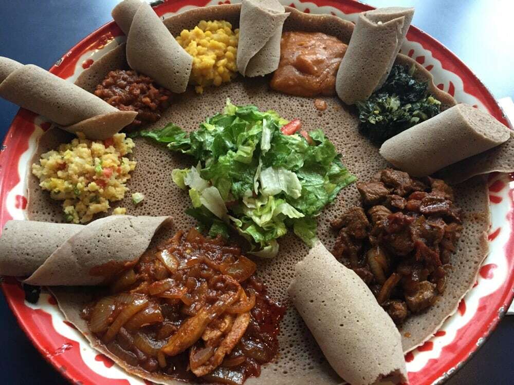 It comes wrapped in two big, fluffy injera (Gluten-free - teff) that had a nice earthy, lemon taste.