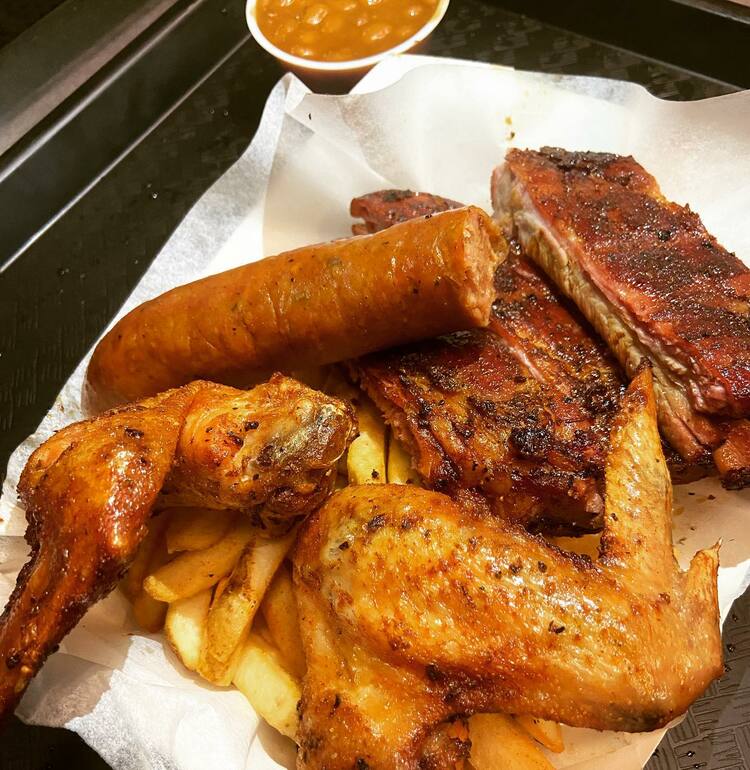 There was a promise in the air of enjoying great tasting BBQ meal. Instead the line employee recommended the whiting fish. Here, the 2x2 piece of bread is known as cornbread but there was not a hint of cornmeal in the “cornbread “, more like a sponge cake. The baked beans , a side dish too, tasted as if only mustard was added to a local store brand of canned baked beans. The collard greens, marginally acceptable. Although the eatery had ample seating, the lone employee bagged my order without asking me whether or not I wanted to eat in or take out. Beverages were not seen on sight nor offered to accompany the meal.