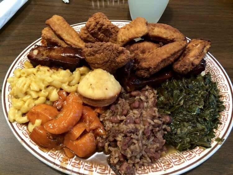 I had the Soul Food Medley!!! It was a bit of everything. 4 pieces of catfish, 4 pieces of chicken, 2 big ribs, cornbread, beans & rice, collard greens, yams, Mac & cheese. It was soo much food! The food was so bomb I WILL be ordering that plate again.