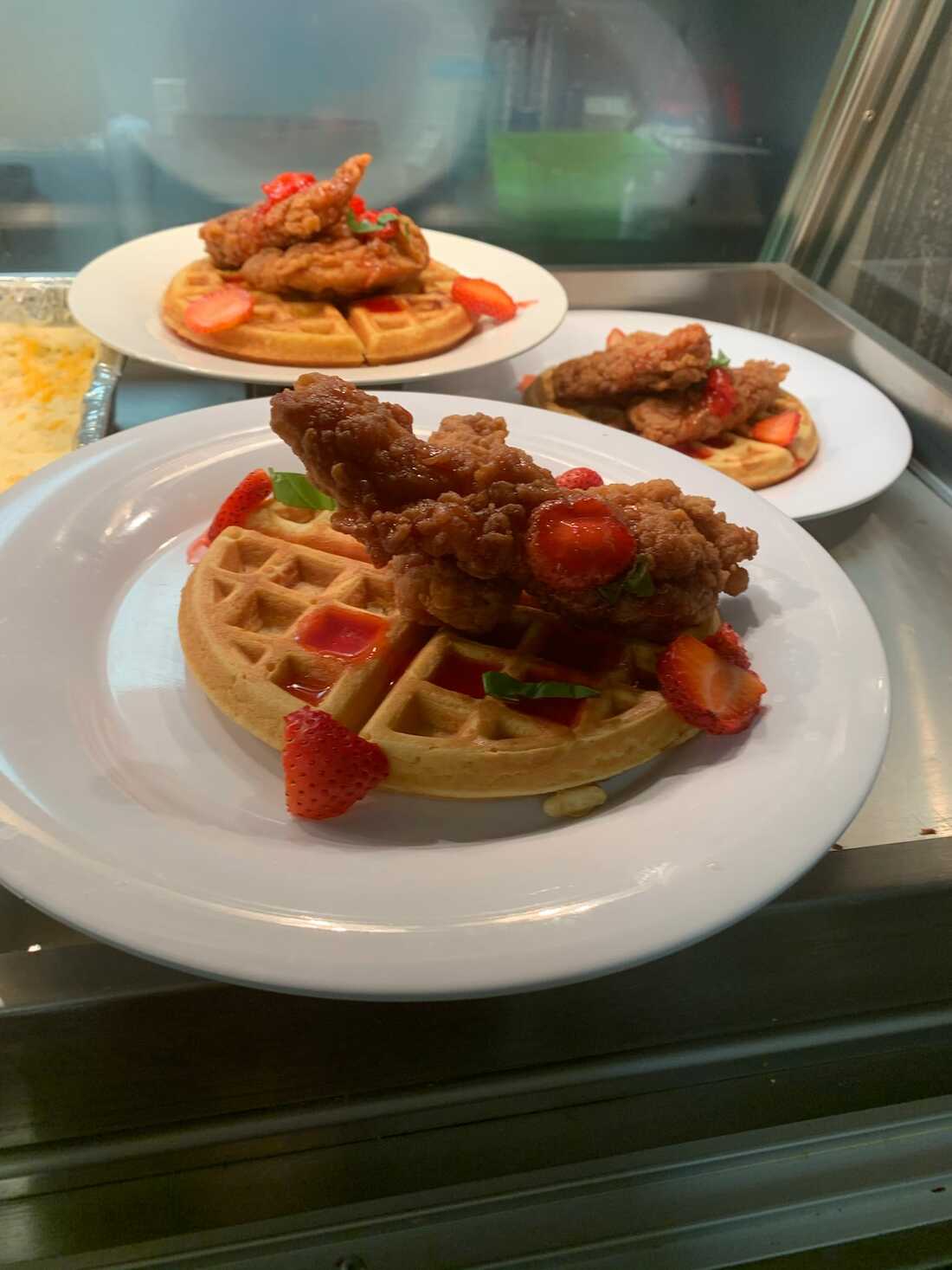 I ordered a waffle and tater tots. The waffle was lightly dusted with powdered sugar and cinnamon. If it had pecans in it, I would give it 5 stars! I’ve added them to my list of places to visit when I’m in the area.